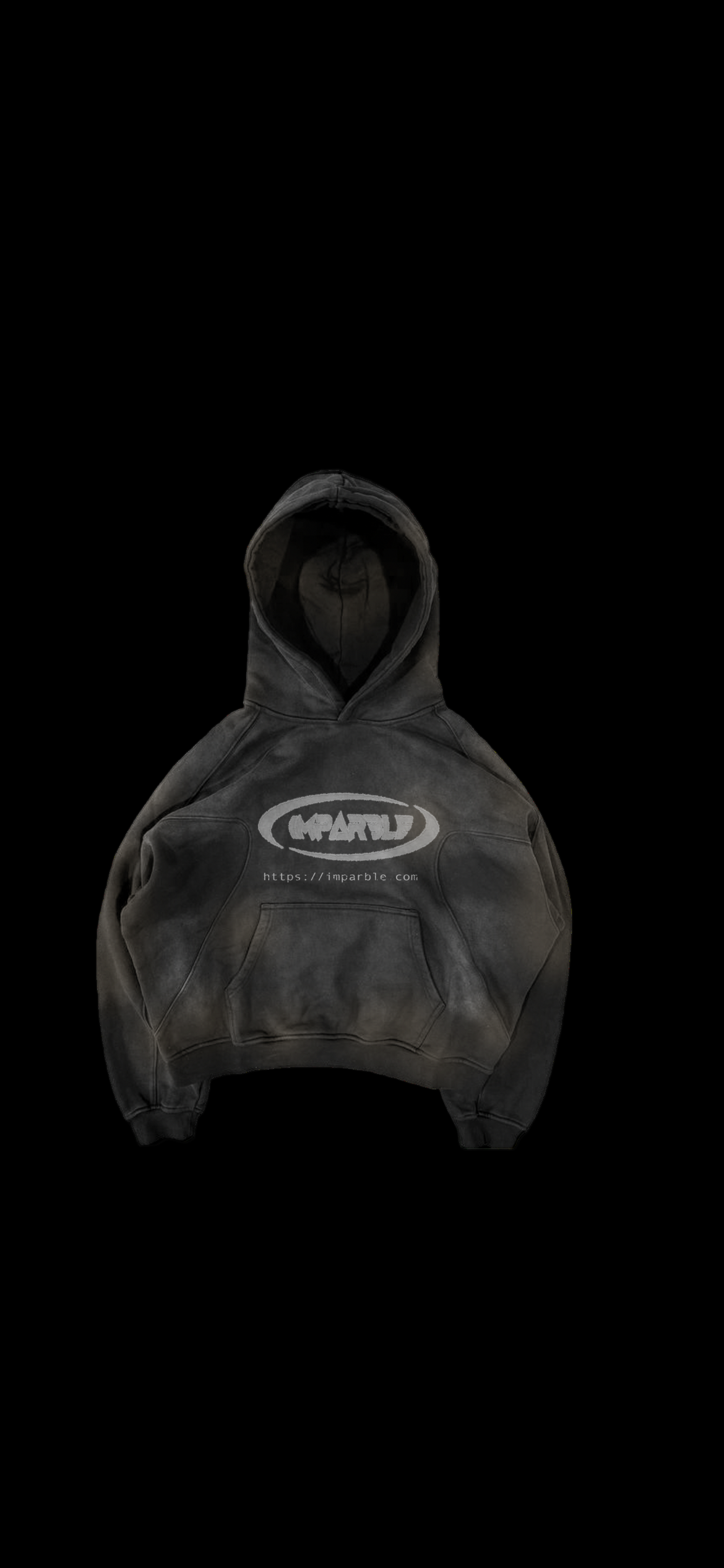 A heavy black hoodie with the bold IMPARBLE logo and URL printed across the chest raw, unfiltered, and unapologetic.